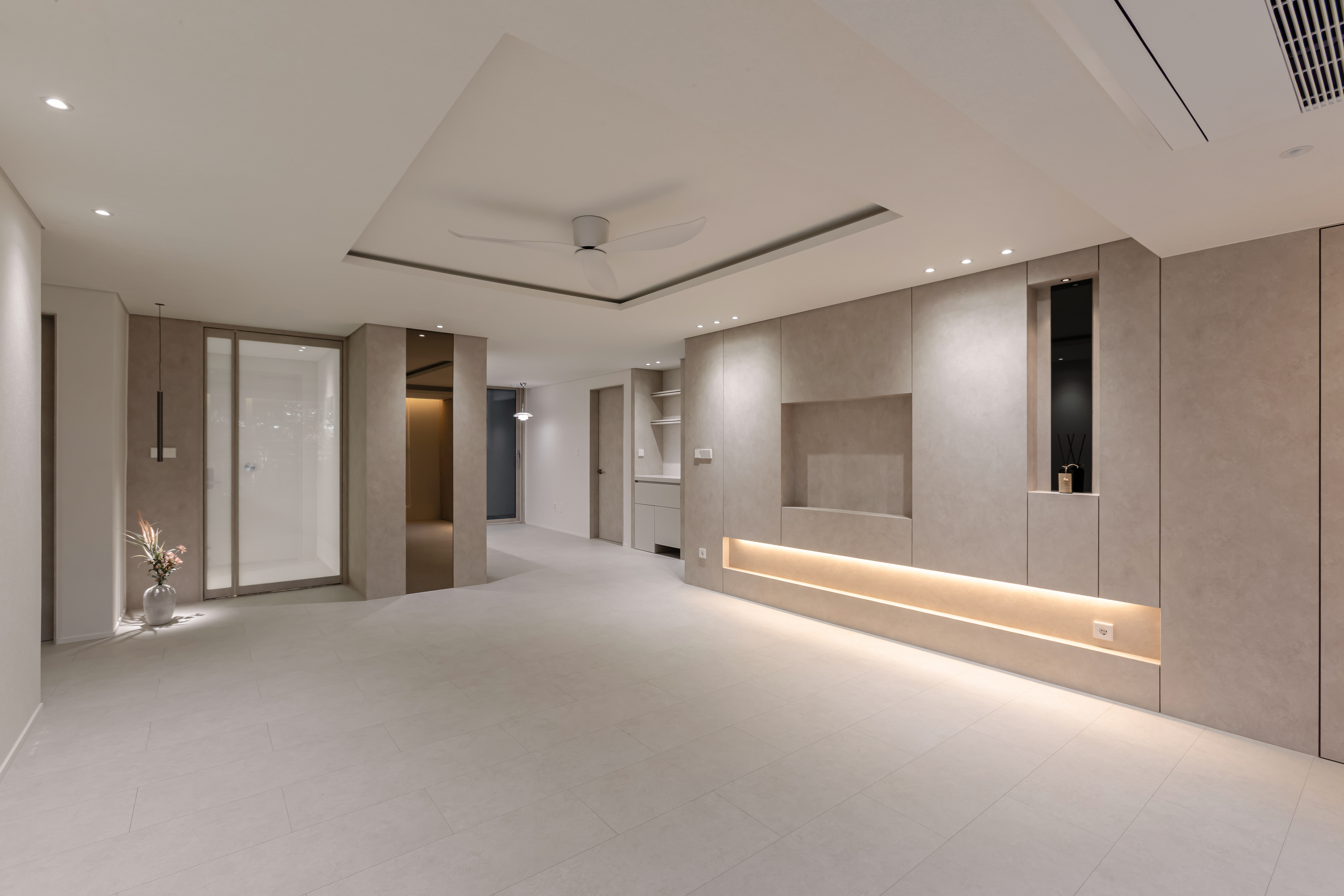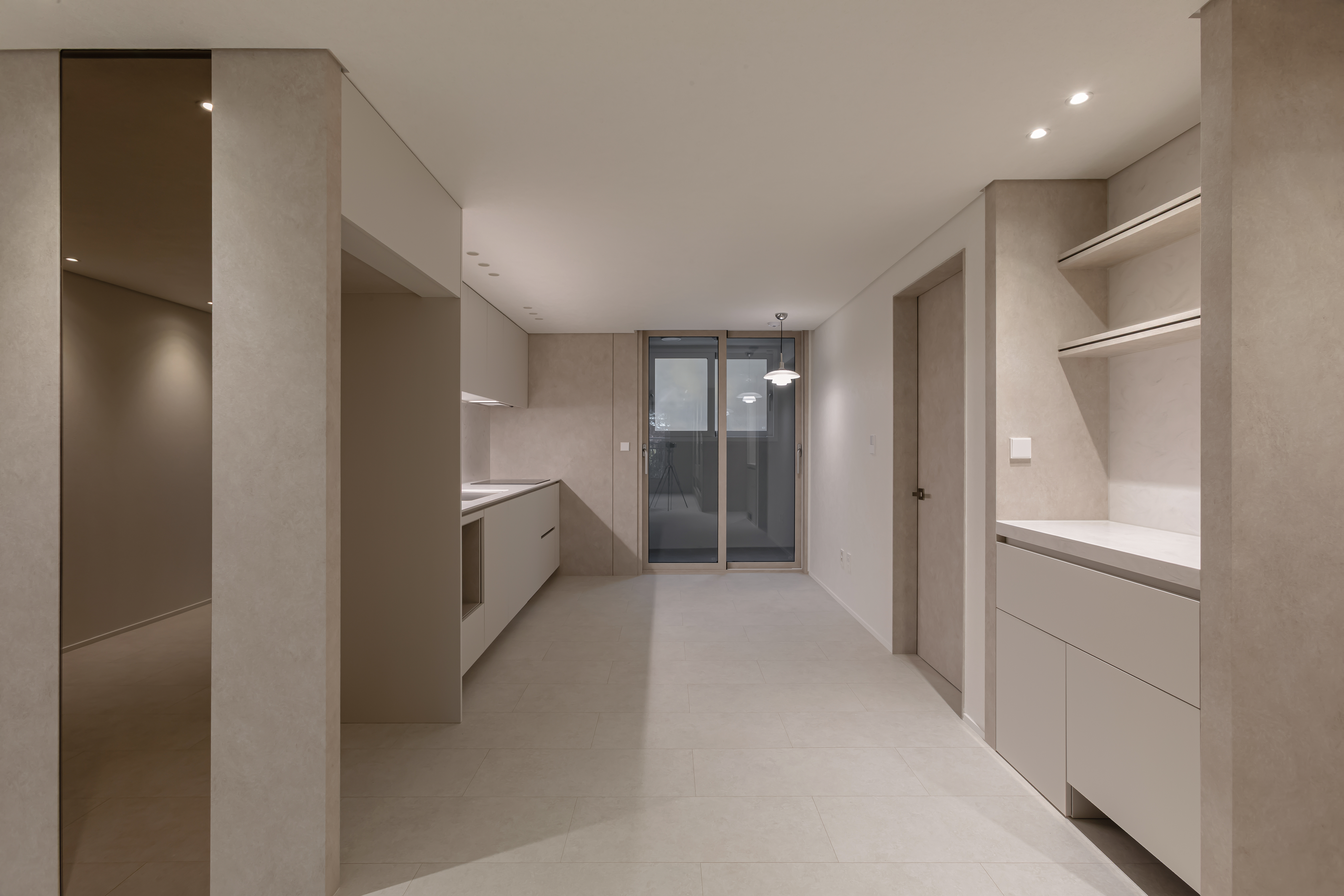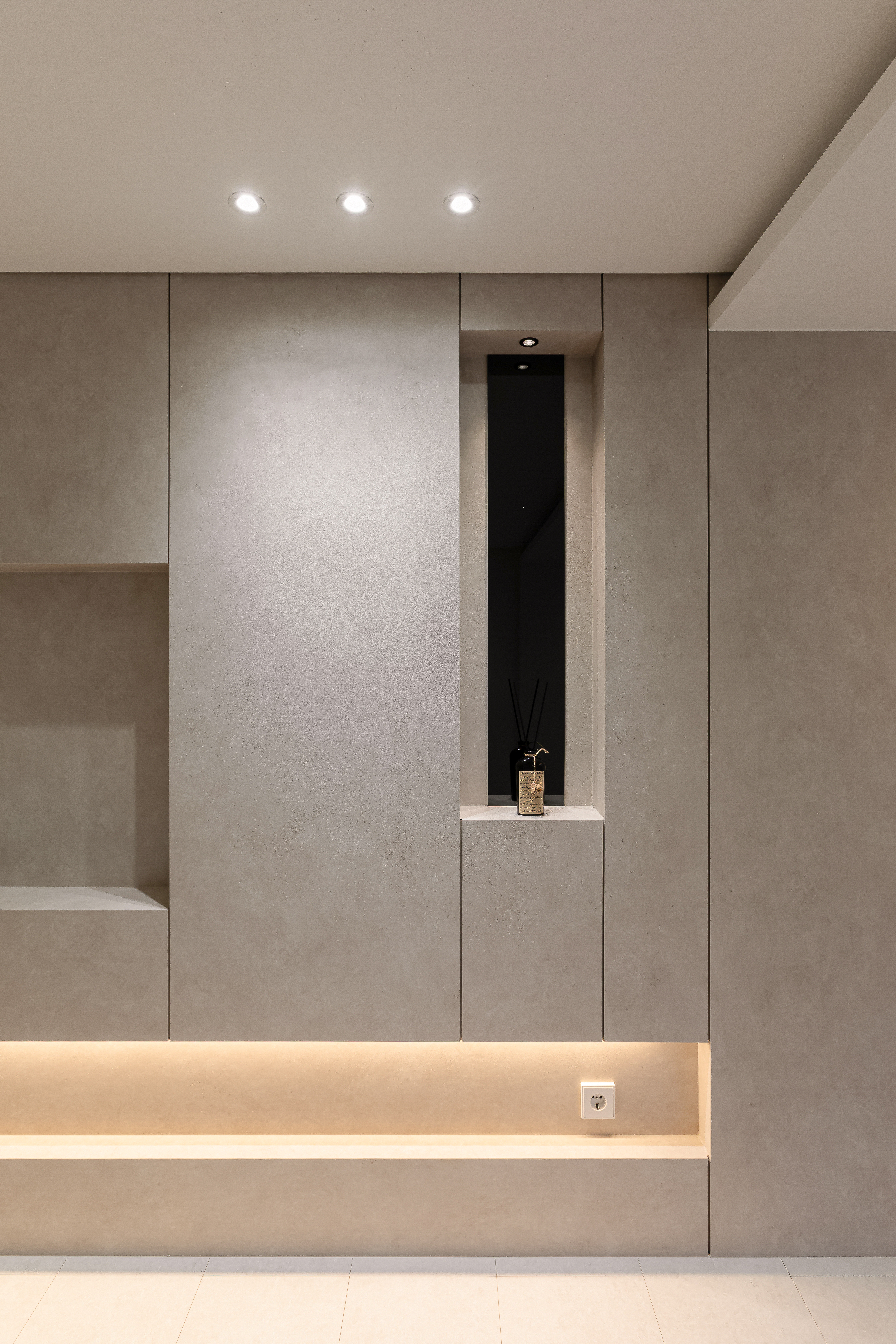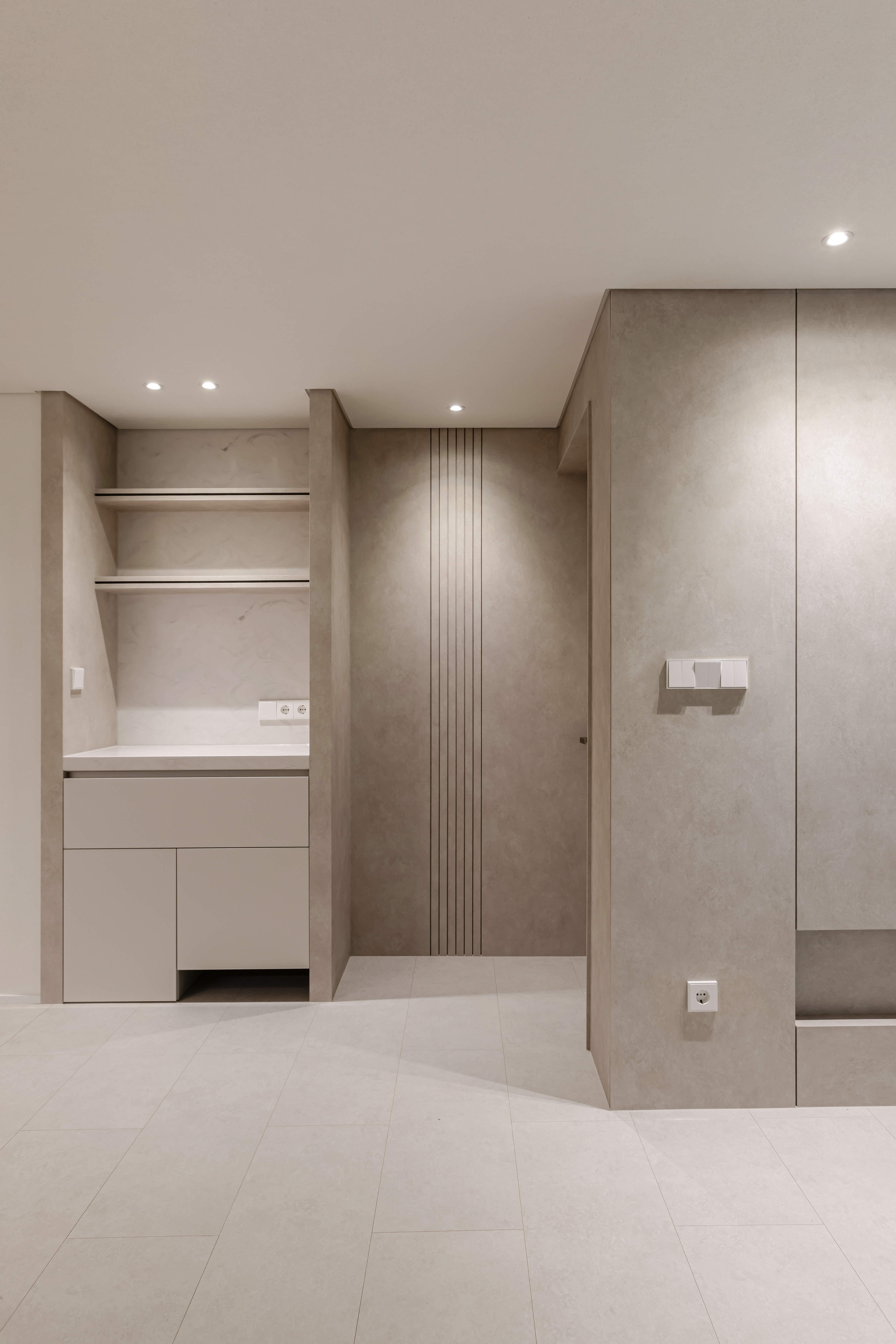 절제된 소재와 정밀한 마감이 만들어낸 공간. 거주자의 일상이 자연스럽게 스며들 수 있도록 모든 요소를 최소화하고 본질에 집중했습니다.